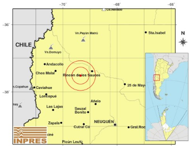 Ocurrió a 86 km al sur de Rincón De Los Sauces, a 416 km al oeste de Santa Rosa y a 104 km al noroeste de Neuquén.