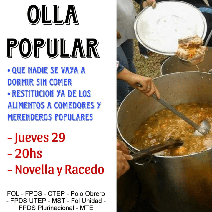 Este jueves, distintas organizaciones sociales de Neuquén iniciarán una serie de jornadas de ollas populares en varios barrios de la ciudad. El objetivo es visibilizar la crisis alimentaria que afecta a miles de familias y reclamar la urgente distribución de mercadería a comedores y merenderos que no reciben asistencia desde octubre del año pasado.