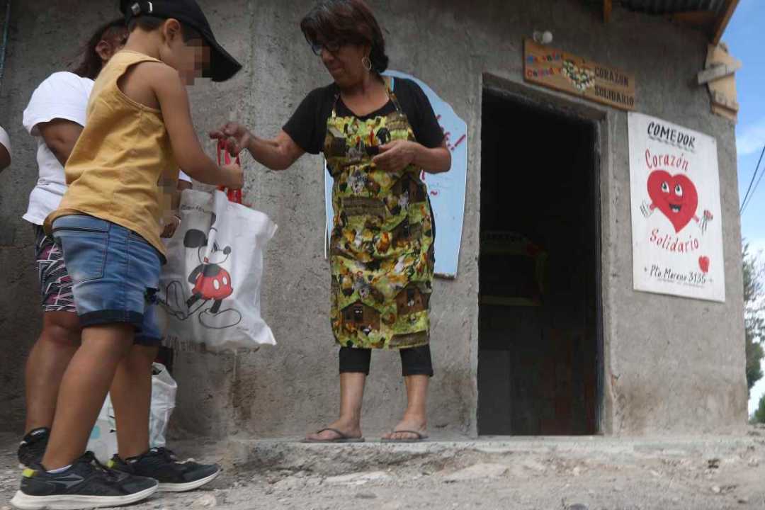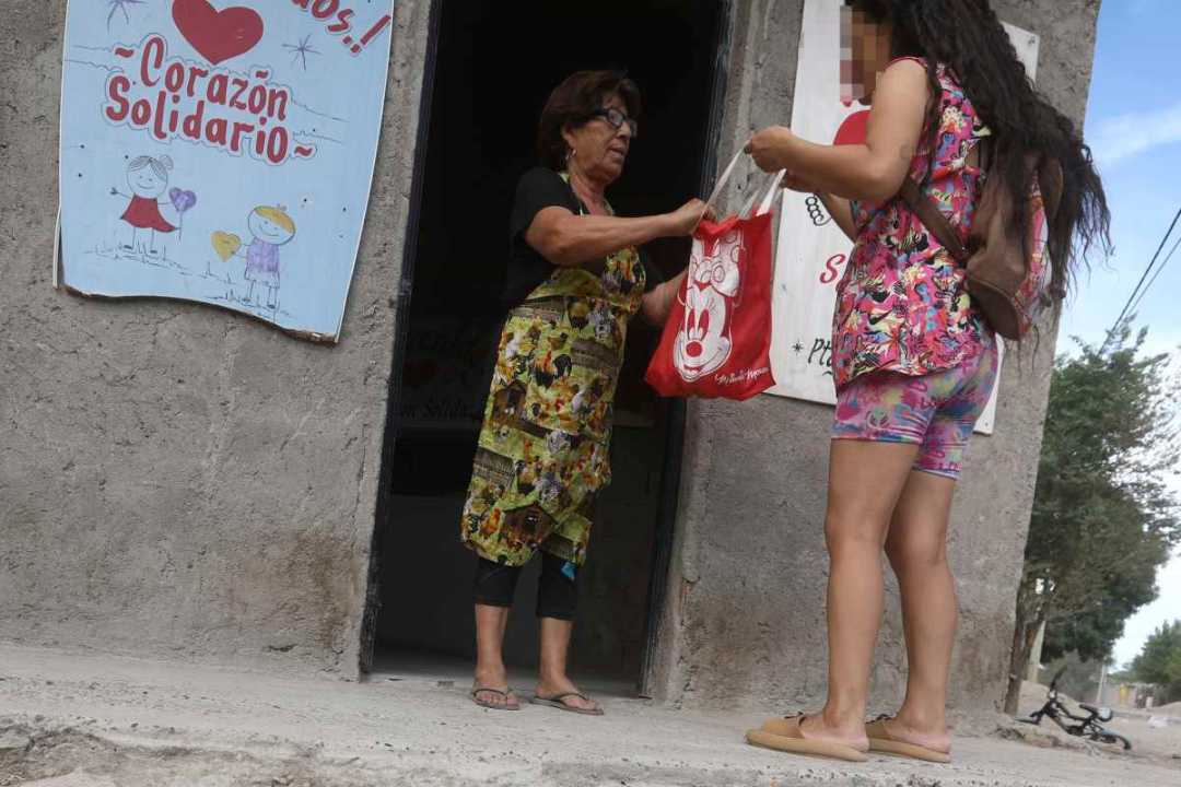 Cuando no hay para la leche, se da té y mate cocido como reemplazo. A unas cuadras, queda “Corazón Solidario”, el comedor ubicado en Perito Moreno 3135 de barrio Nuevo. Entrega por día 400 viandas diarias, almuerzo, cena y merienda. La fuente de ingresos de este comedor, que es Asociación Civil, es la de donaciones.