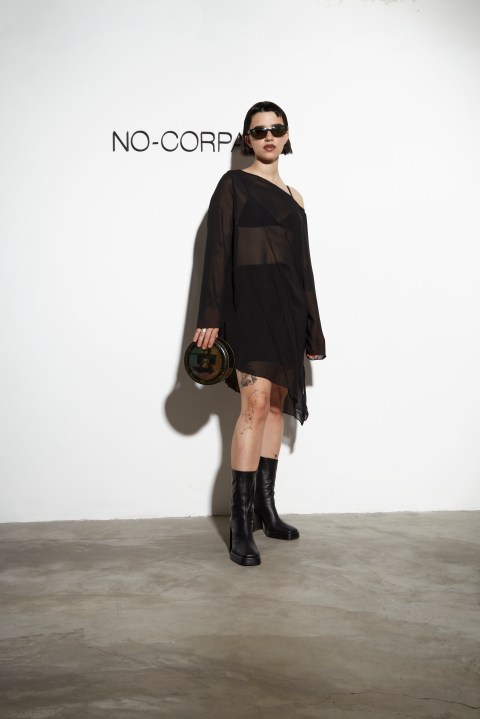El enfoque de NO-CORPA es claro: producción a pequeña escala, prendas sin género que “son pensadas como obras de arte” y algunas hechas a pedido. “Tratamos de alejarnos de la idea del consumo masivo. Queremos que las prendas perduren en la vida de las personas”, dijo Pamela, destacando la flexibilidad de su marca para customizar las prendas según los deseos de sus clientes.