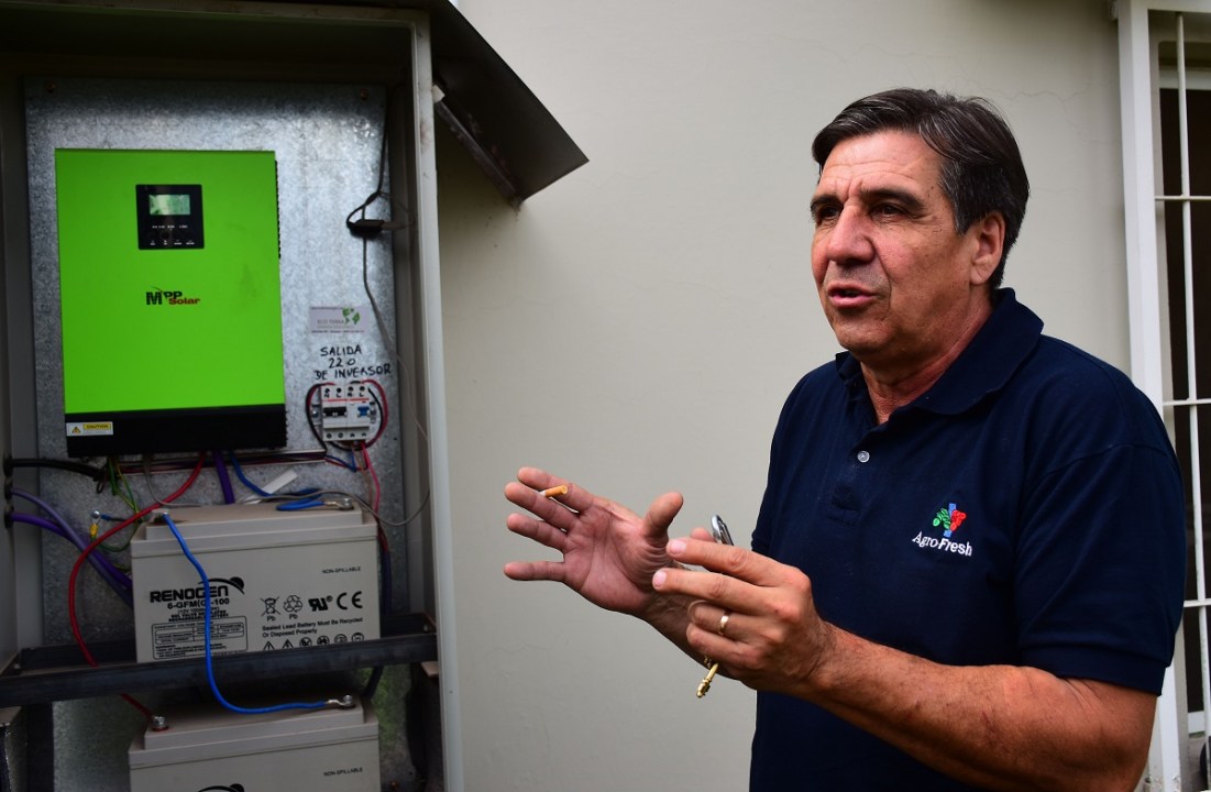 «El primer equipo era de 2 kw, en el techo del estacionamiento pusimos 10 kw. Los 2 kw alcanzan para mantener las computadoras y la iluminación, aunque no alcanza para el aire acondicionado. Con 10 kw abastecés una casa, son unos 30 paneles en horario diurno si no tenés baterías», sostiene el gerente de Agro Fresh en Roca.