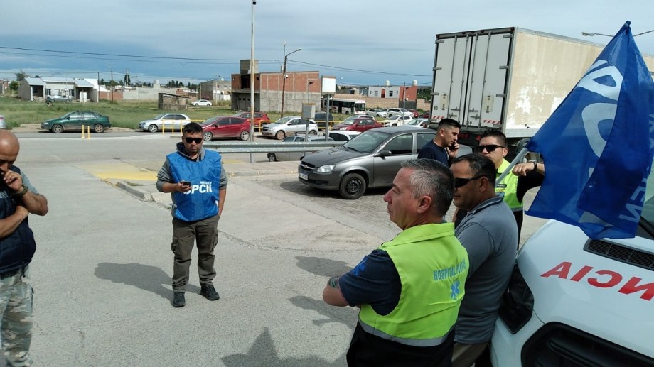 Los choferes de ambulancias del hospital de Plottier agremiados en UPCN llevan a cabo el segundo día de protesta por 48 horas en reclamo por falta de personal.