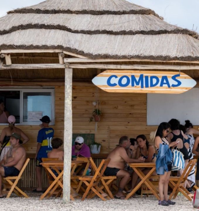 Detrás de la playa está el parador de techos de paja. Por momentos suena una chicharra y los vendedores de churros salen disparados y corren hacia la orilla. En el quincho de madera hay música, tragos, algo para comer, y movimiento hasta las 19 (ver aparte).