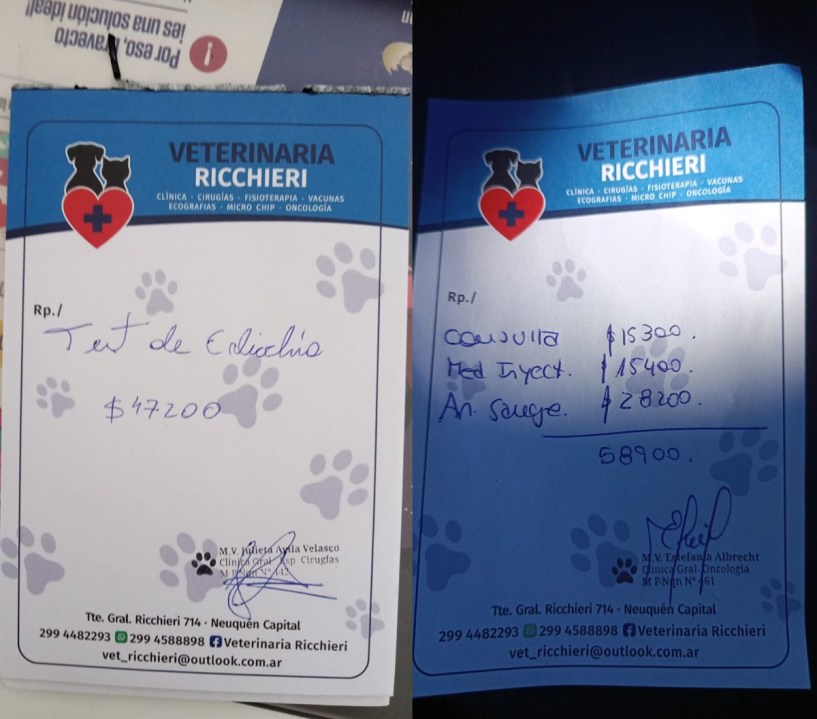 Una policía que siempre la ayuda, en conjunto con comerciantes de la zona, pidió apoyo para su «compañera perruna de patrullas». La mujer explicó que Jefa se encontró «muy decaída» y que al ser llevada a una veterinaria, la profesional médica que colabora con los perros rescatados por la fuerza, detectó que tenía «sus plaquetas bajas» y por eso necesitan realizarle un test que cuesta $47.200.