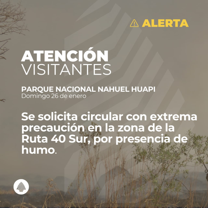 Este domingo, se reporta la presencia de humo en la Ruta Nacional 40, entre Bariloche y El Bolsón, a causa del incendio forestal en el parque Nahuel Huapi. Las autoridades solicitan precaución al transitar la zona.
