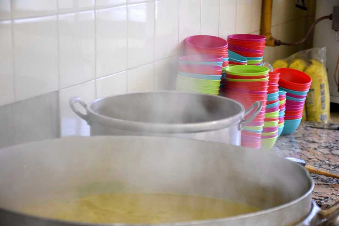 La escuela 154 cuenta con un menú variado. Claudia, la cocinera, había preparado el jueves pasado diez kilos de pollo y catorce de arroz. Ya tenía previsto pescado para el viernes. Sin embargo no hay comedor, y los chicos y las chicas reciben el plato en las aulas.