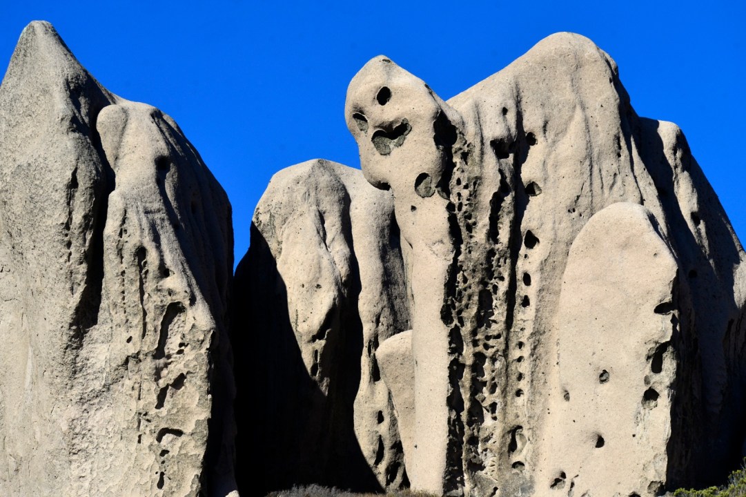 En este cerro de unos 1600 metros hay formaciones de piedra donde la erosión del agua y el viento han formado agujeros naturales que sirven de “dormitorios” a los cóndores.