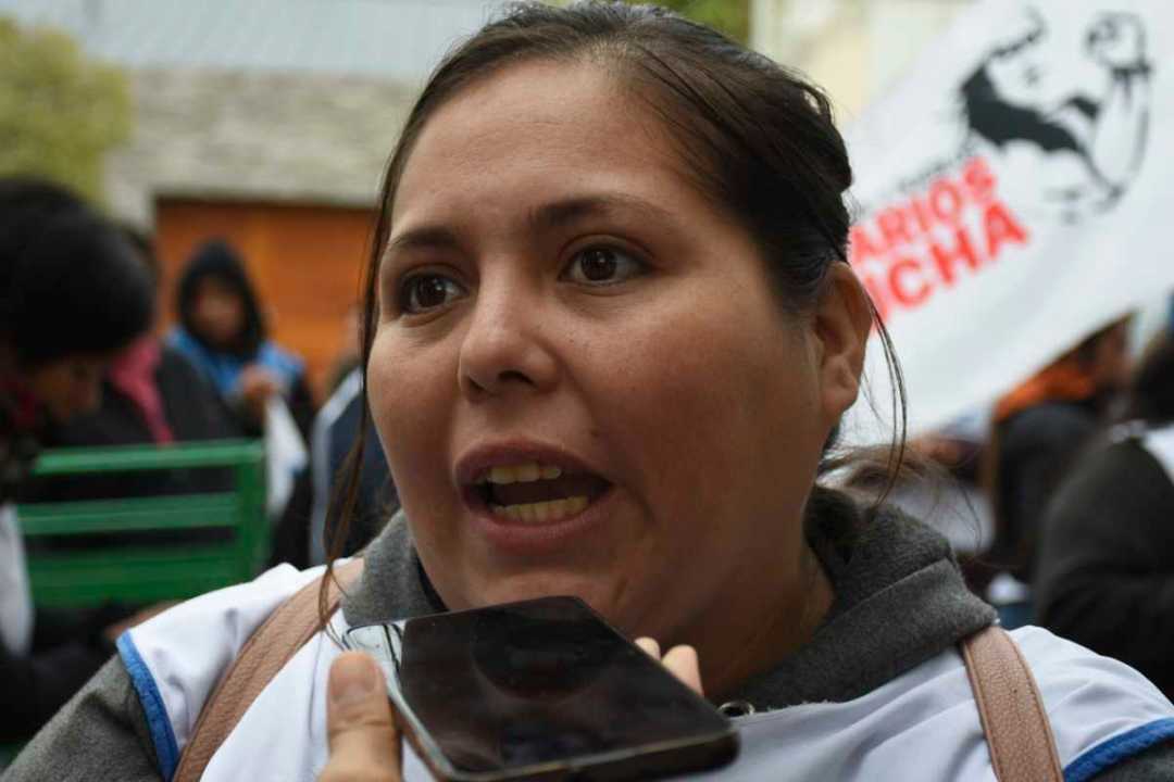 Nadia Ortiz, coordinadora provincial de la Corriente Clasista y Combativa (CCC) y actual concejala electa en Roca se movilizó en la columna de diferentes barrios de Roca y dialogó con la prensa.