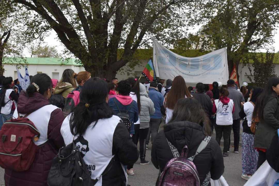 En una jornada de lucha nacional, movimientos sociales marcharon este miércoles por las calles de Roca a pesar de las lluvias y se dirigieron a la sede de Desarrollo Social de Río Negro donde concentraron las fuerzas pasadas las 10 de la mañana.