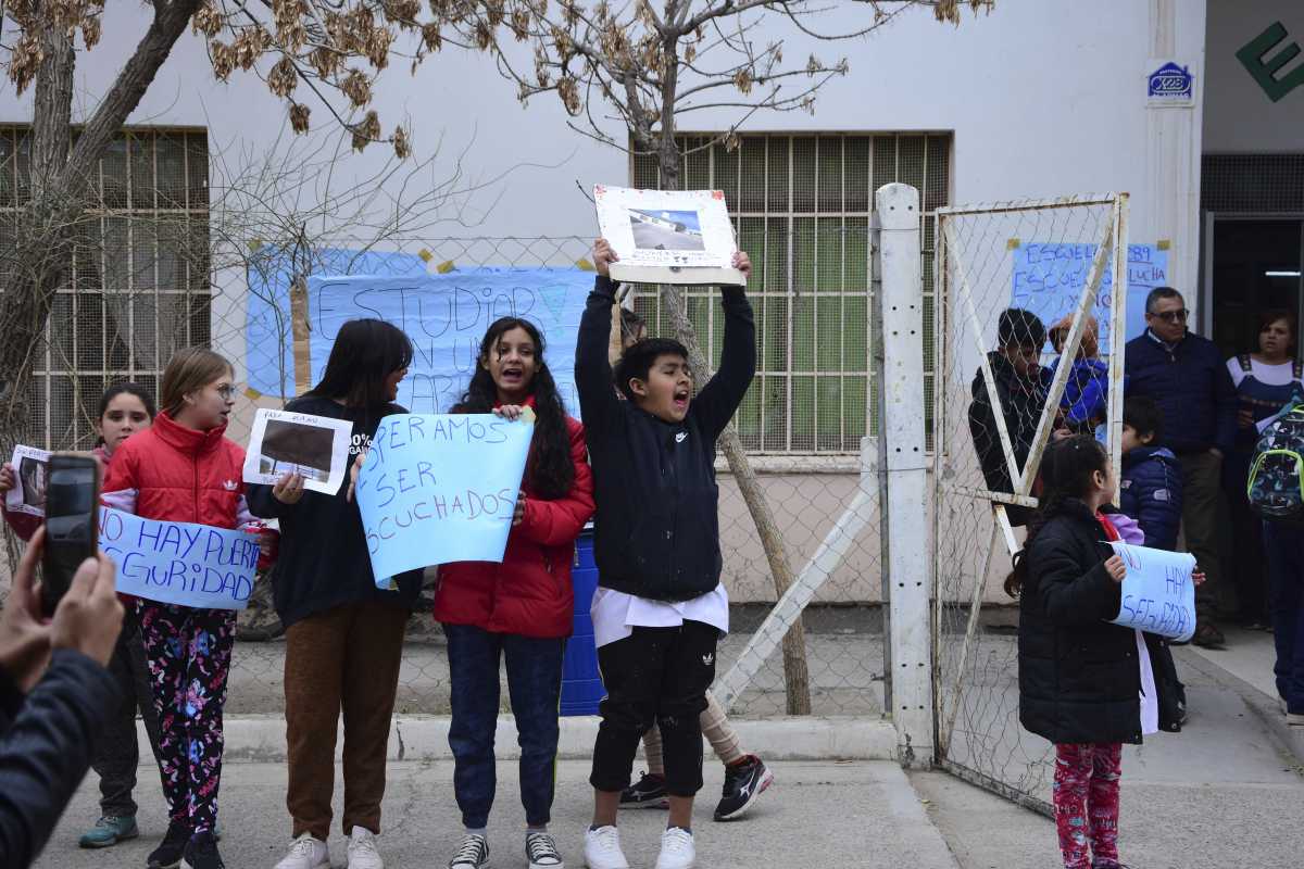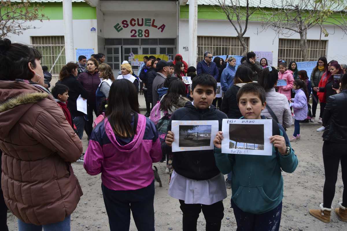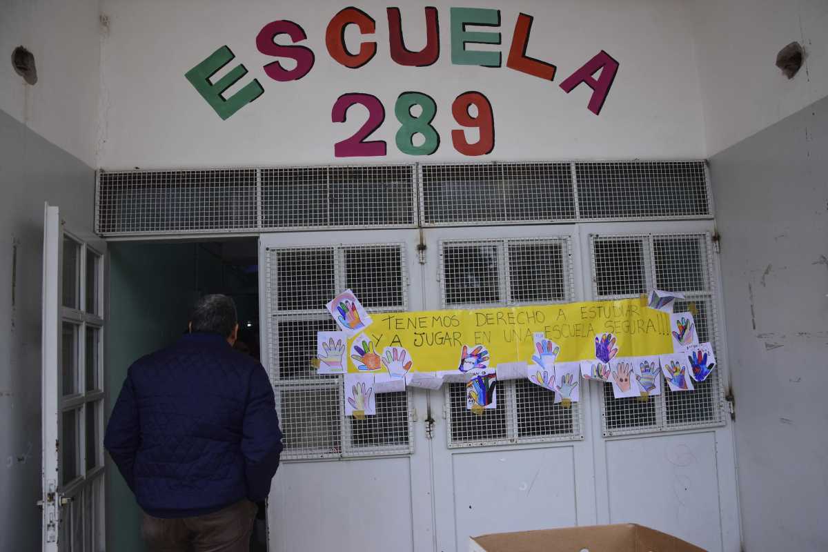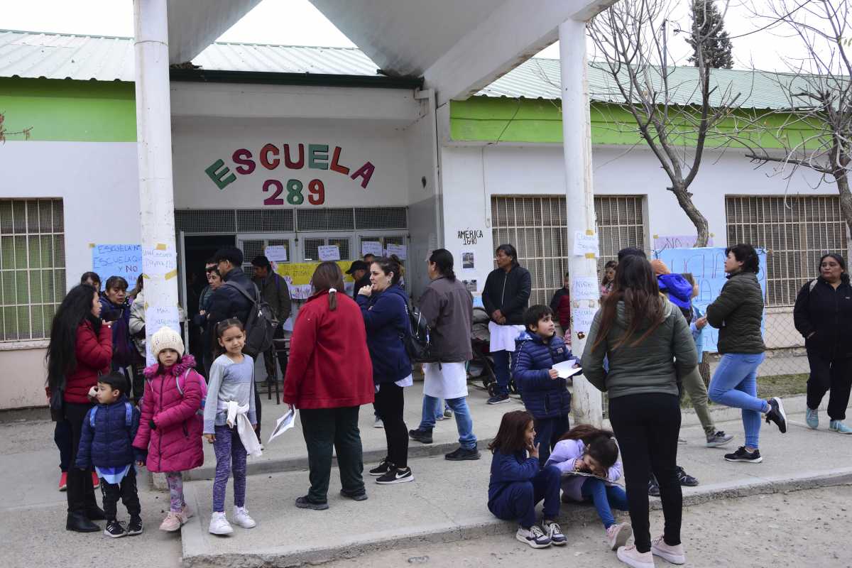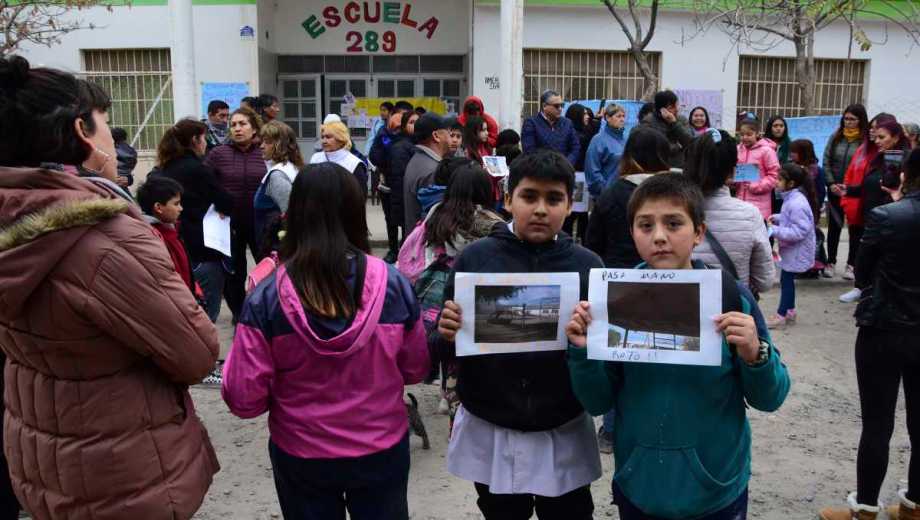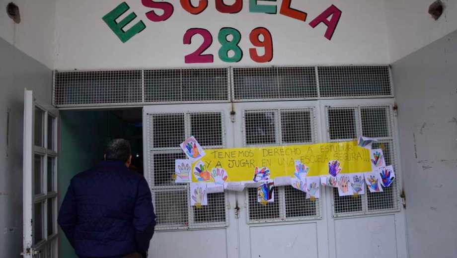 Este mediodía miembros de la comunidad educativa de la Escuela N°289 de Roca realizaron un abrazo simbólico y luego un grupo de padres tomó el edificio para reclamar por la seguridad en el establecimiento y mejoras en las condiciones edilicias.