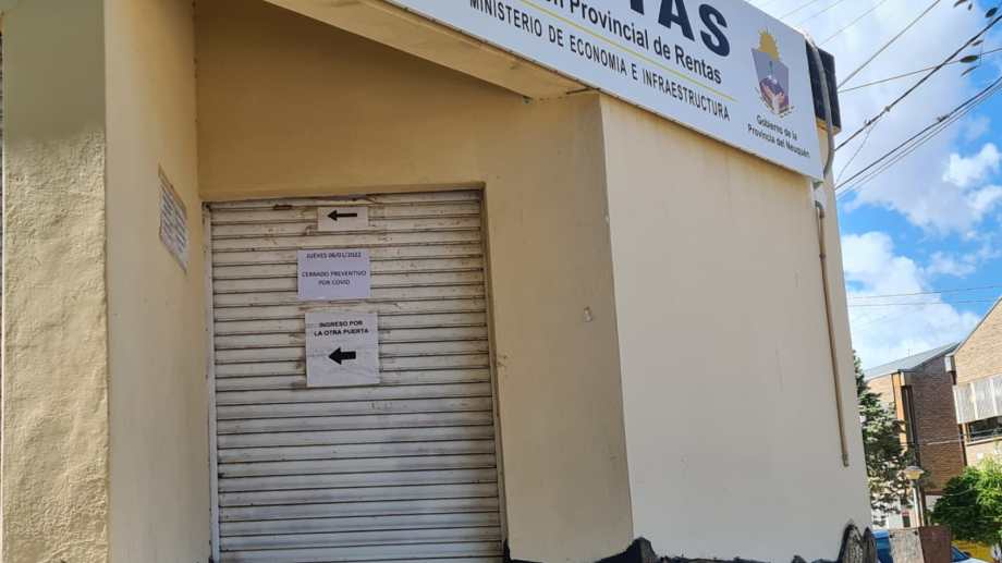 Esta semana se resolvió el cierre de la oficina de la Dirección Provincial de Rentas -situada en La Pampa y Perito Moreno- para prevenir ante el aumento de casos de coronavirus y porque también falta personal de limpieza.