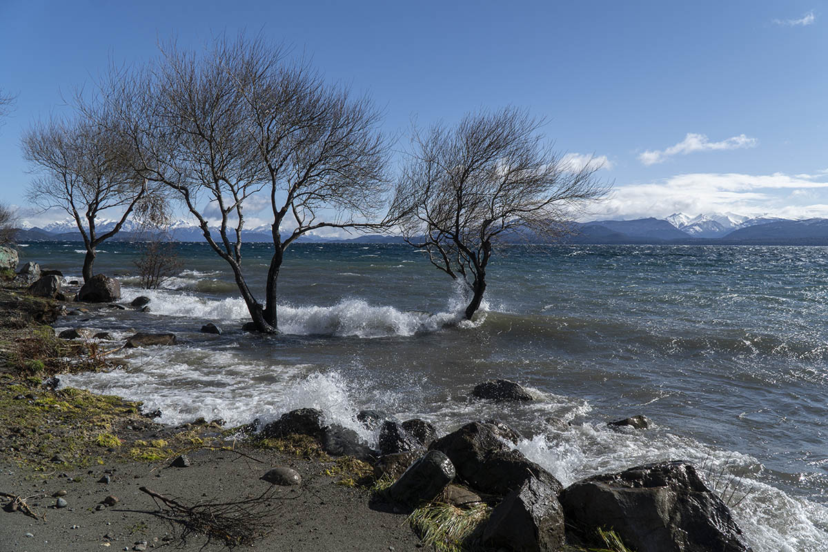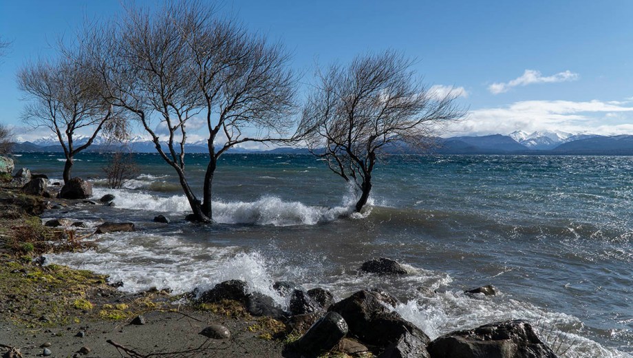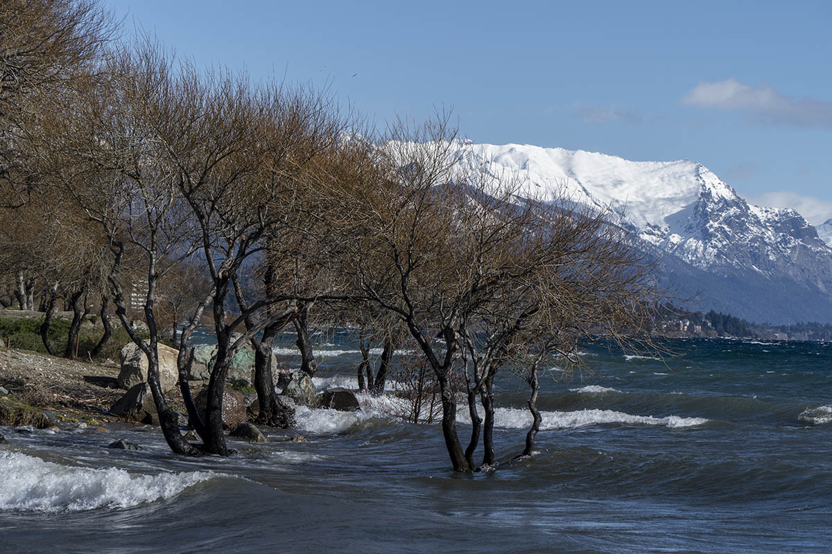 Un asombroso paisaje con árboles sumergidos sorprende en las costas de Bariloche.