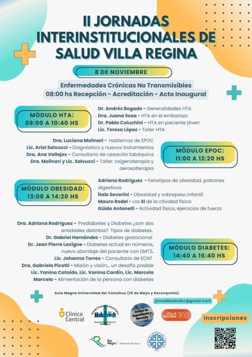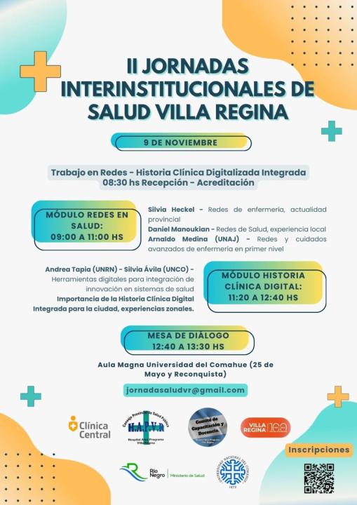 La II Jornadas interinstitucionales de salud de Villa Regina comenzaron el viernes 8 y continuarán el sábado 9 de noviembre. Una por una todas las actividades:
