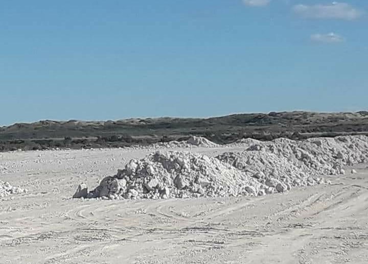 Se trata de la piedra caliza (calcita) que la empresa descarta y la municipalidad comenzó a usar para acondicionar un área de estacionamiento en plena playa, en La Mar Grande. Dicen que su voladura provoca irritación en las mucosas y dificultades respiratorias