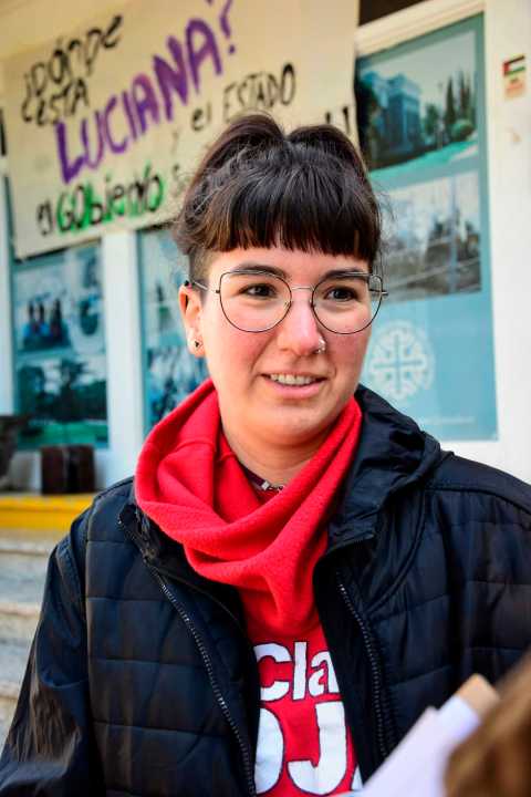 Florencia Sepúlveda quiere ser profesora y licenciada en Historia. Anoche durmió unas cinco horas. También forma parte de la toma del rectorado de la UNCo. Tiene 20 años y desde el año pasado se mudó de Picún Leufú a Neuquén para estudiar en la universidad pública. Sus padres no son profesionales, ella es la primera en intentar serlo. Su madre es empleada de un comercio y su padre, electricista. Sus trabajos para afrontar el día a día son dos: maneja las redes sociales de una juguetería y a veces, cuando le sale, es niñera. Su padre la ayuda con el alquiler del departamento y su madre con el día a día, para comprar comida.