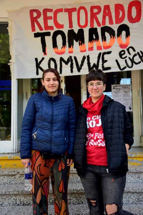 Florencia Beltrán también durmió unas pocas horas. Desde ayer a la tarde que esta en la toma del rectorado de UNCo en Neuquén. Es la co-presidenta del centro de estudiantes de la Facultad de Humanidades. Su caso es como mucho de sus compañeros: trabajó durante toda la carrera, de niñera, de atención al público. «Tomar el rectorado es una decisión que tomamos en asamblea interfacultades e interclaustros», explica, «para rechazar el veto de Milei y de los diputados«.