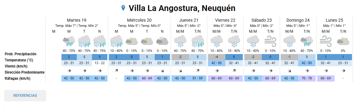 El invierno patagónico no da tregua y este martes 19 de agosto llega con todos sus condimentos: nieve, lluvias intensas y viento con fuerza. Así lo anunció el Servicio Meteorológico Nacional, siendo protagonistas las localidades de las cordillera de Neuquén y Río Negro. Se esperan bajas temperaturas y ráfagas de 70 km/h. Te contamos los detalles.