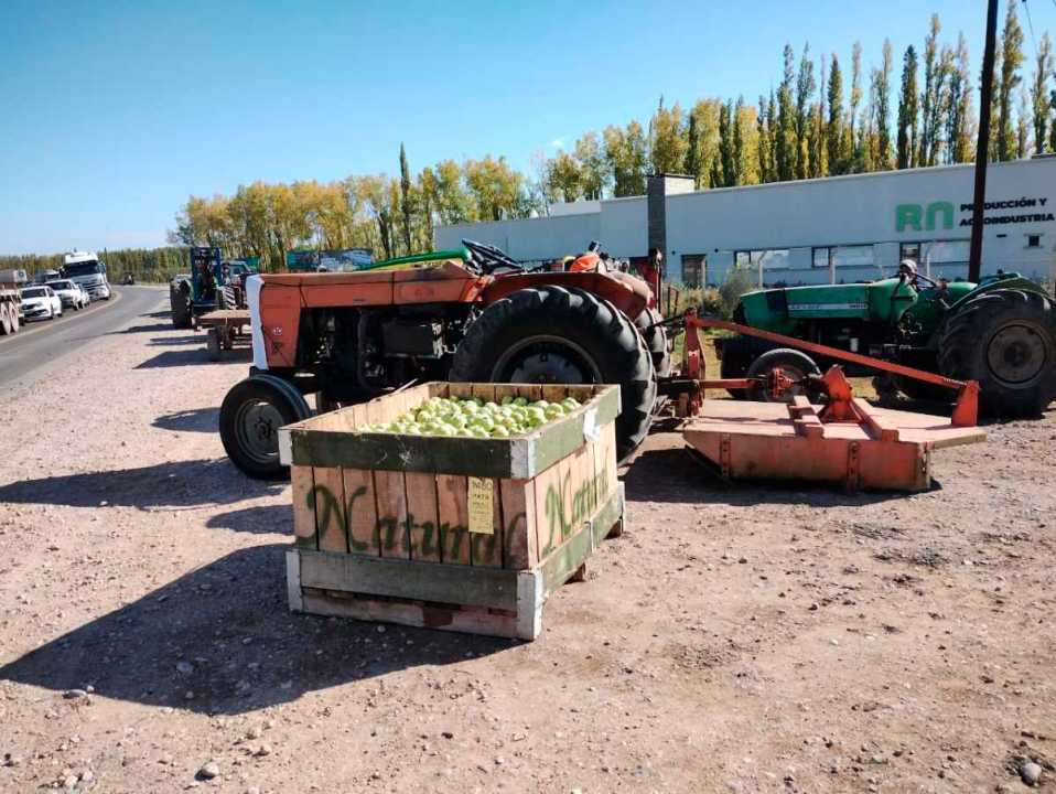 Los productores se apostaron con tractores y bines de fruta, que entregaron a quienes pasaban por la carretera y afrontaban la espera para seguir su camino. La protesta comenzó minutos antes de las 10 de la mañana y en el lugar trabajó personal policial del Cuerpo de Seguridad Vial de Allen.