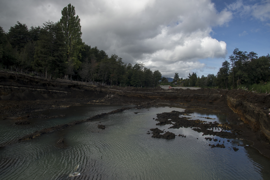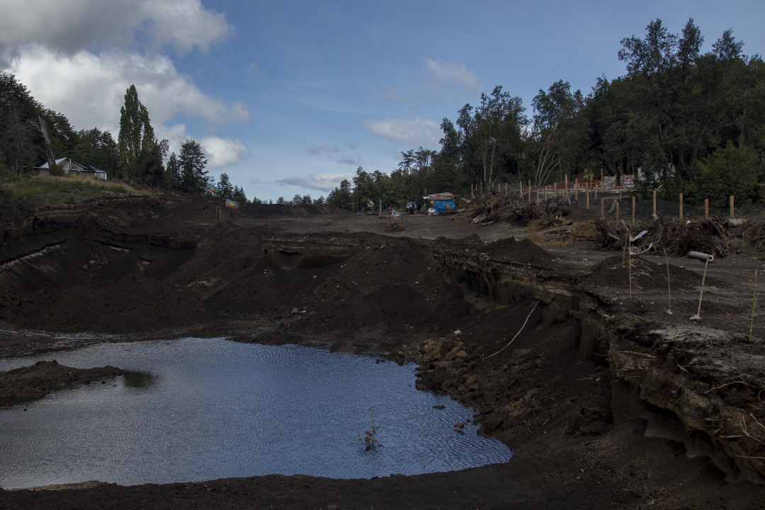 Los movimientos de suelo dejaron pozos enormes en ese lugar. Las autoridades de la comunidad denunciaron el impacto ambiental causado por las máquinas.