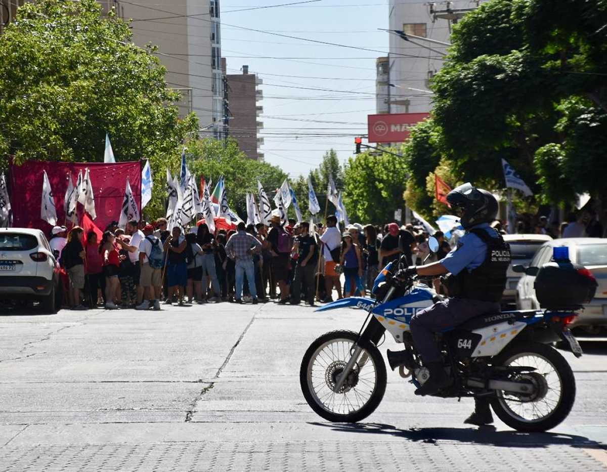 La Multisectorial de Neuquén convocó a una marcha a las 10, en el monumento San Martín que pasó por la protesta que realizó el Frente Gremial en el Tribunal Superior de Justicia en un gesto de unidad.