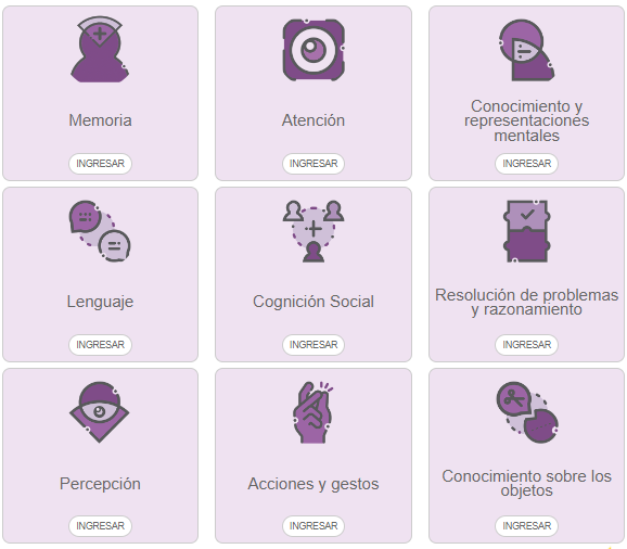 Cada ejercicio detalla qué habilidades trabaja —por ejemplo, memoria visual, atención selectiva o procesos perceptivos— y cuenta con un sistema de dificultad graduado por colores, similar a un semáforo: