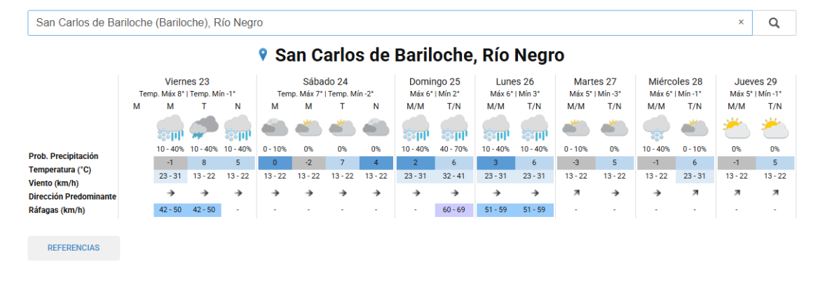 El sábado será el día más frío con una mínima de -3°C y una máxima de 8°C. El domingo volverán las lluvias y nevadas con el ingreso del frente frío. Los viento tendrán velocidades que alcanzarán los 78 km/h.