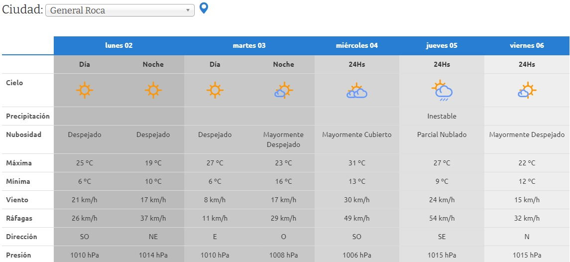 Roca y el Alto Valle: qué esperar de la primera semana de diciembre