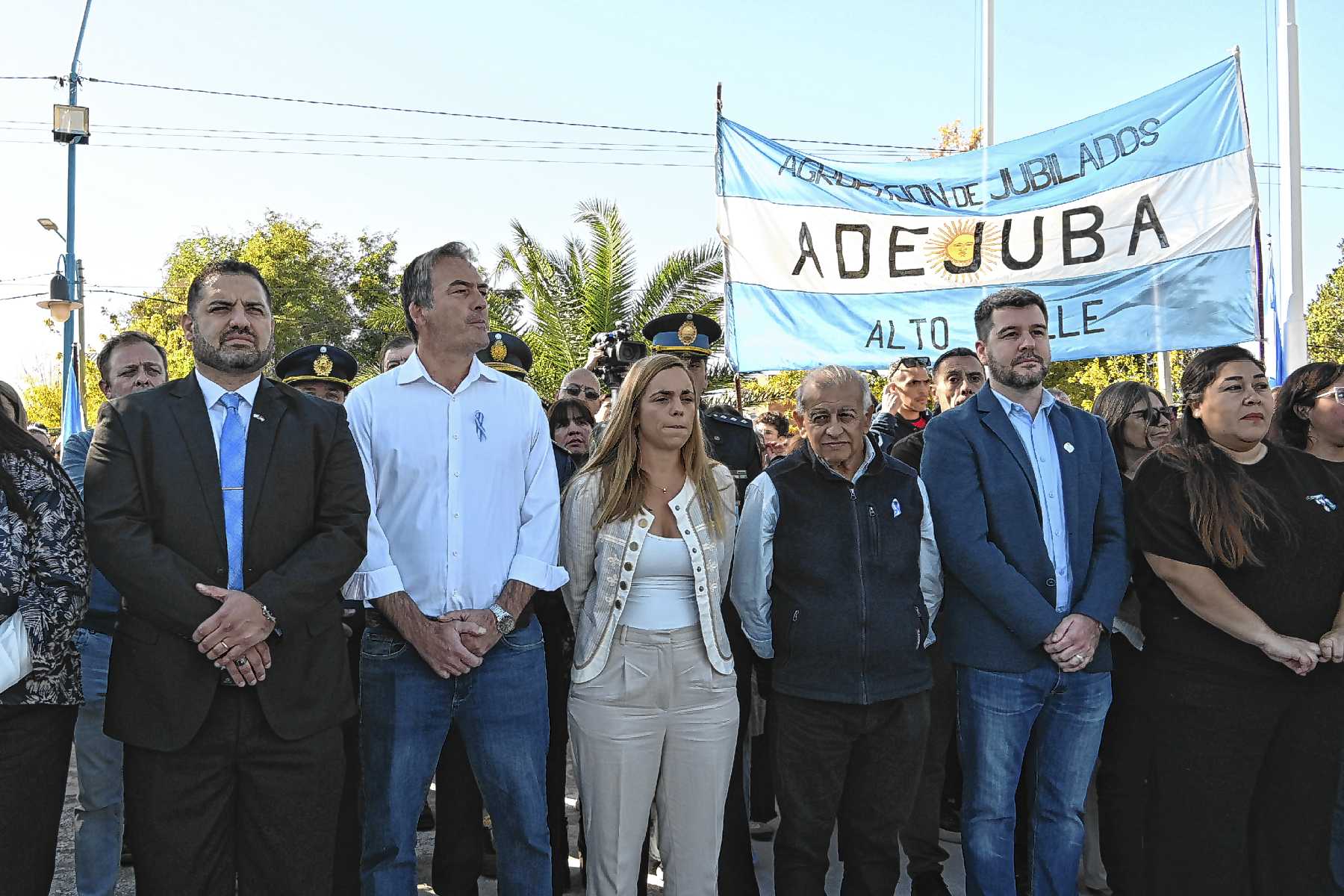 “No nos vamos a rendir”, comenzó su discurso Flores. Al igual que la intendenta María Emilia Soria, quien también brindó un sentido homenaje a los veteranos y caídos, reivindicó la memoria, la soberanía y la libertad.