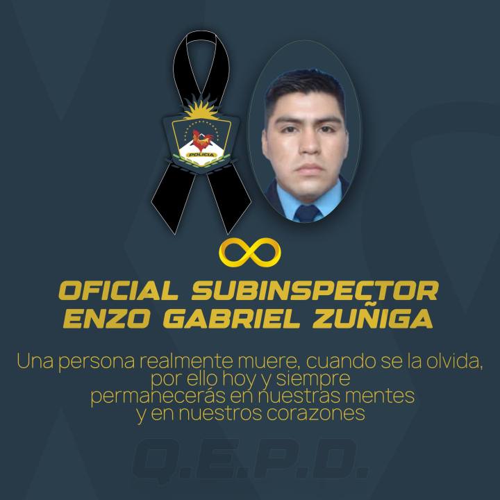 Por su parte desde el Ministerio de Seguridad de Neuquén, conducido por el ministro Matías Nicolini, emitieron un comunicado y lamentaron el suceso. «El ministro participa con profundo dolor el fallecimiento del Oficial subinspector, Enzo Gabriel Zuñiga (Q.E.P.D.), y acompaña a su familia, esposa e hija en este difícil momento», expresaron.