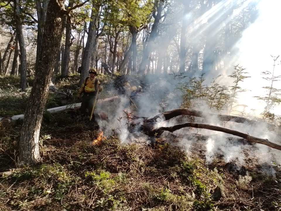 Un total de 259 personas vienen trabajando en el combate del incendio del Parque Nacional Los Alerces, de los cuales 155 brigadistas están asignados al terreno para tareas con herramientas manuales y fajas cortafuegos; y cuentan con el apoyo de maquinaria vial y autobombas.
