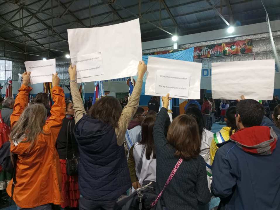 Esta semana, docentes, supervisores y familias de los alumnos presentaron una nota ante el Concejo Municipal a fin de que los concejales puedan gestionar ante las autoridades provinciales. También participaron de la marcha contra el ajuste universitario que confluyó en el Centro Cívico, con gran cantidad de carteles a fin de visibilizar la situación.