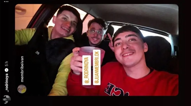 Los muchachos habían estado en las instalaciones de Casino Magic, donde subieron fotos bailando con el artista. Además, publicaron una foto con Noya en el auto siniestrado, donde se los ve con una cerveza en la mano, que el actor también replicó en su cuenta.