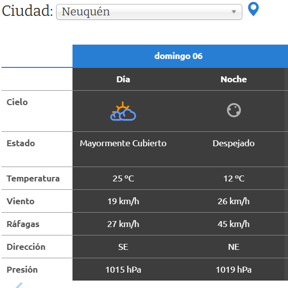 En Neuquén, este domingo se espera una máxima de 25 °C que recién a la noche descenderá hasta los 12°C.