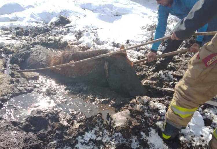 Los menucos son pequeñas superficies de tierra que se encuentran sobre presencia de agua, a lo que se le suma el barro que produce la nieve. El caballo quedó atrapado hasta su cabeza, entre todo eso, por lo que fue sacado con cuidado con unas sogas.