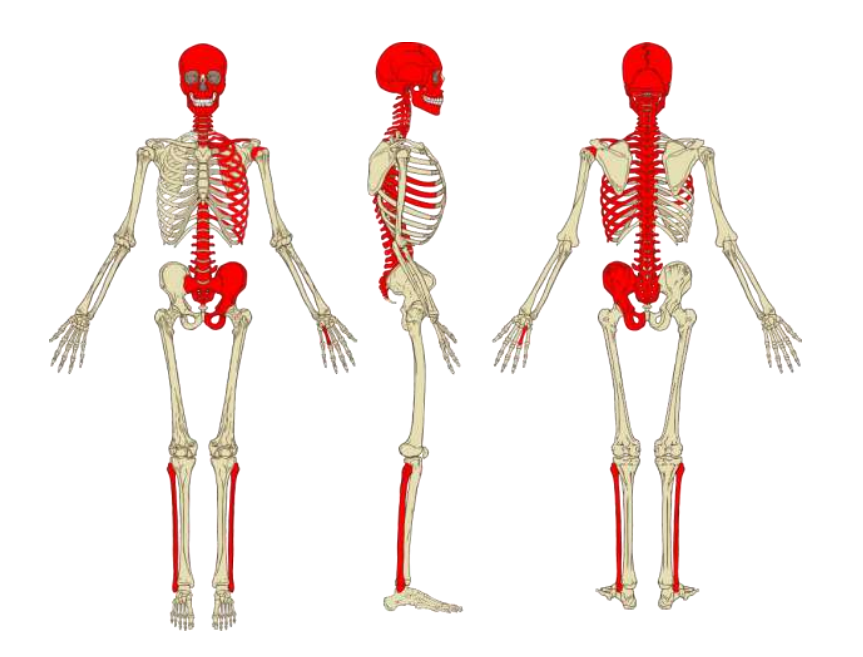 Los huesos preservados en la tierra pertenecen a distintas partes del cuerpo, entre ellas el esqueleto axial, una clavícula, dos metacarpianos, los peronés y toda la columna vertebral. La data precisada es de unos 590 años de antigüedad.