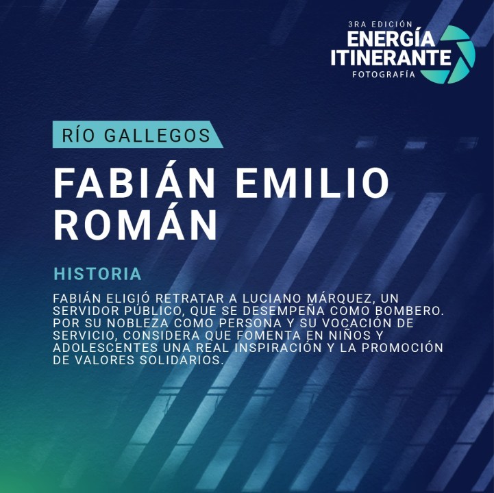 Por su parte, Fabián Emilio Román participó inscribiendo la fotografía que le tomó al bombero Luciano Imanol Marquez. «La elección de un servidor público, como lo es un bombero, amerita a su nobleza como persona, al servir sin importar el costo, y fomenta en niños y adolescentes ser una buena persona y estar siempre predispuesto a ayudar. Por este motivo, considero que el retrato de un bombero es motivador», expresó Fabián al anotarse en el concurso.