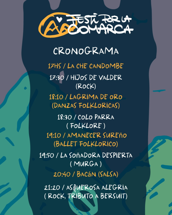 La jornada contará con un cronograma diverso que iniciará a las 17:00 con La Che Candombe, seguido por el rock de Hijos de Valder a las 17:30. A las 18:10, Lágrima de Oro traerá su espectáculo de danzas folklóricas, y a las 18:30, el folklore de Colo Parra se hará presente en el escenario.