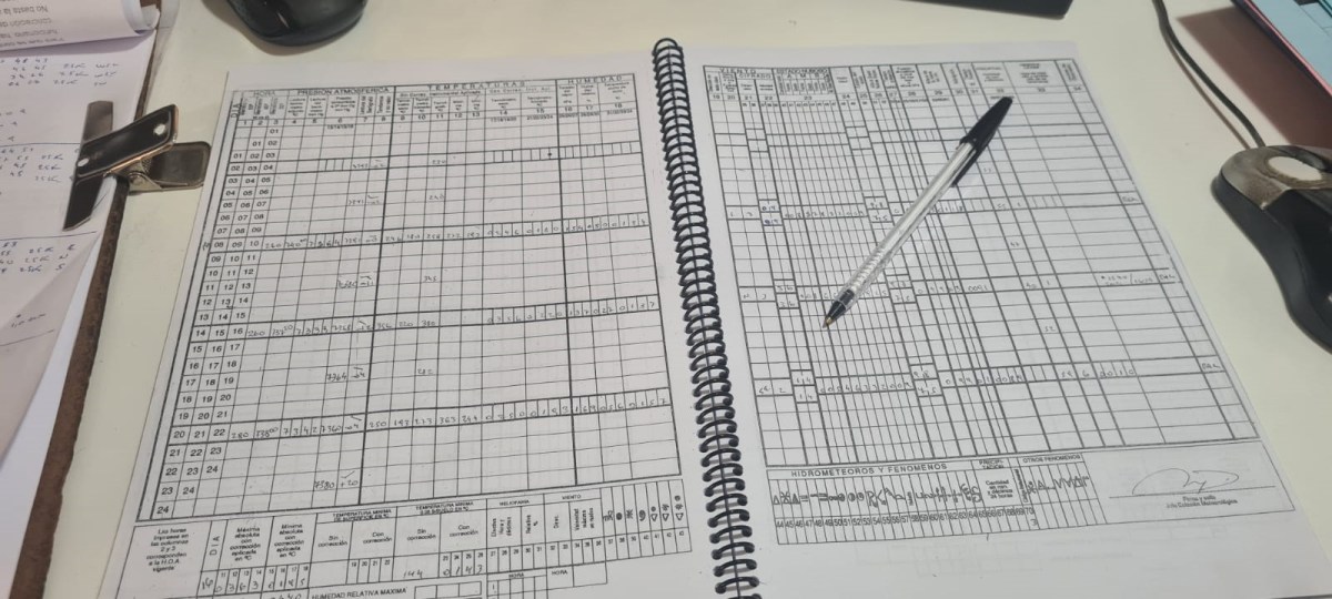 El mundo de Rodolfo son los termómetros, barómetros, veletas, planillas y su “sagrada” libreta meteorológica. En ella vuelca los datos que toma cada tres horas. Se trata de un documento nacional que no admite fallas.