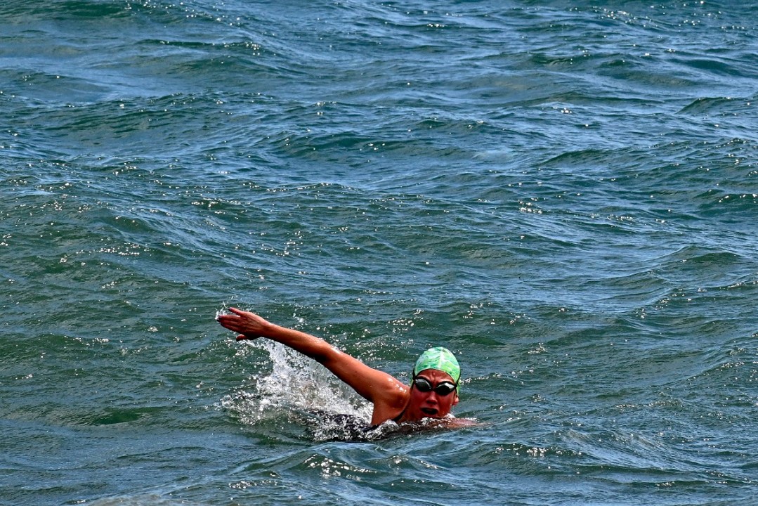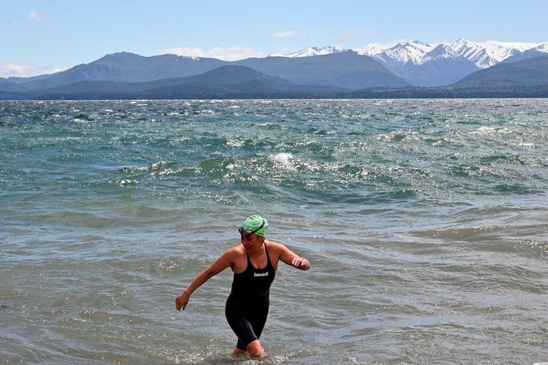 Con 54 años, esta barilochense acumula logros. Participa en diversas competencias y se posicionó como una de las mejores nadadoras en aguas abiertas en su categoría.