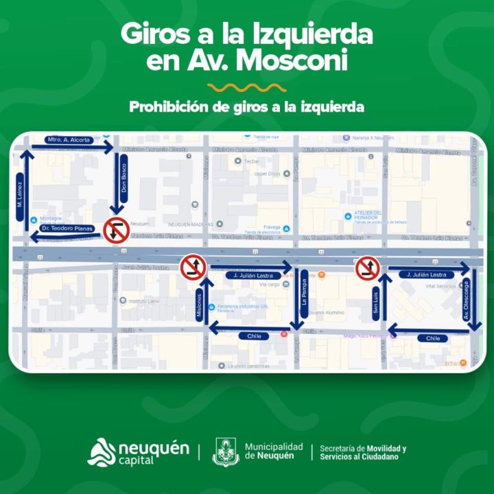 Este jueves 10 de octubre el Municipio de Neuquén continuó con los cambios en la circulación de la ciudad: se prohibieron tres giros a la izquierda sobre Ruta 22 y se aplicaron cambios de sentido en dos calles.