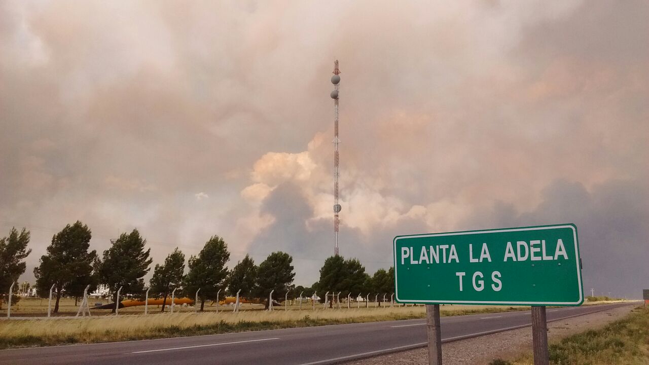 La planta de TGS, prestadores del servicio público de transporte de gas natural, ubicada en el kilómetro 853 de la Ruta 22 se encontraba en riesgo, por lo que maquinarias de Vialidad y Bomberos trabajaban para evitar más complicaciones.