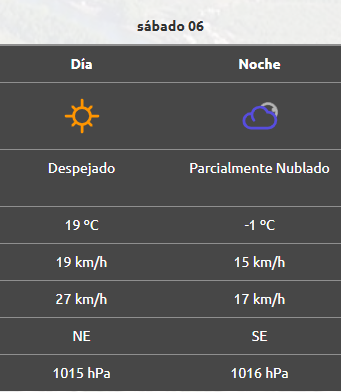 Por la noche, la temperatura descenderá hasta -1°C, y el cielo estará parcialmente nublado, pero sin probabilidades de precipitaciones. El viento cambiará de dirección hacia el sudeste y bajará su incidencia.