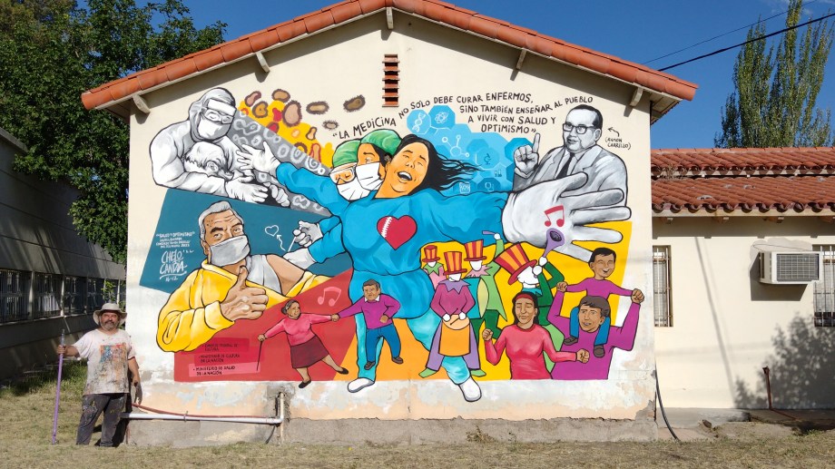 El viernes de la semana pasada el artista y muralista, "Chelo" Candia realizó una nueva obra de arte pública dentro del predio del hospital Francisco López Lima de Roca, en la que brindó un homenaje a los trabajadores de la salud.