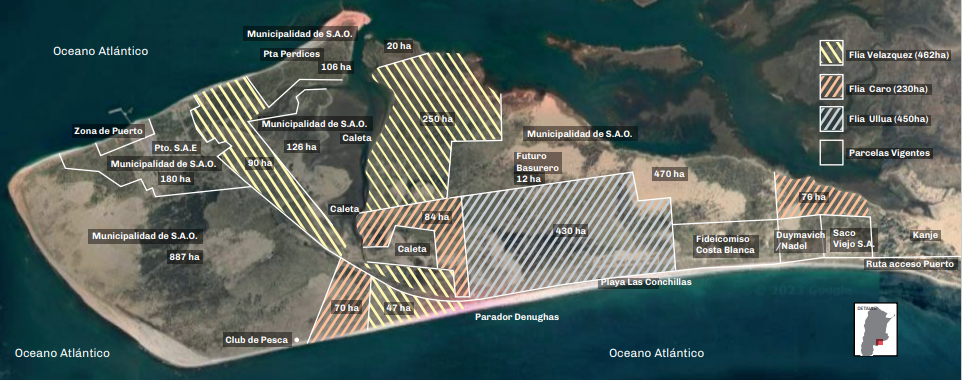 Hoy esa franja es de un enorme valor turístico, y los beneficiarios del acuerdo creado por el municipio no la ocupan. No está alambrada ni cuenta con animales o plantaciones, ni siquiera en un porcentaje de lo entregado. Las que sí existen son denuncias efectuadas por el titular de una fracción de Saco Viejo, dónde se está desarrollando un loteo llamado «Costa Blanca». Ellos alertaron que uno de los descendientes de los Ullúa, antes de que se concretase el polémico acuerdo, derribó médanos y alambró una parte de las tierras que ahora le cederían. Incluso promocionó la venta de lotes, anticipándose a la resolución del tema.