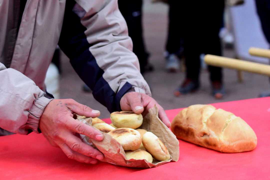 La mesa ya está servida con bandejas de pan. Érico, José y Gabriel ya están sentados. Comen una torta frita y esperan un plato de comida. Érico tiene 52, José 41 y Gabriel 25. Los tres hace años que están en situación de calle. “Siempre venimos a catequesis porque nos dan comida”, cuenta Eric, “y nos dijeron que hoy estaba esto, así que nos quedamos. ¿Qué hay de comer?”, pregunta. “Guiso de arroz con pollo”, dice Gabriel. “Bien ahí”, contesta Érico.