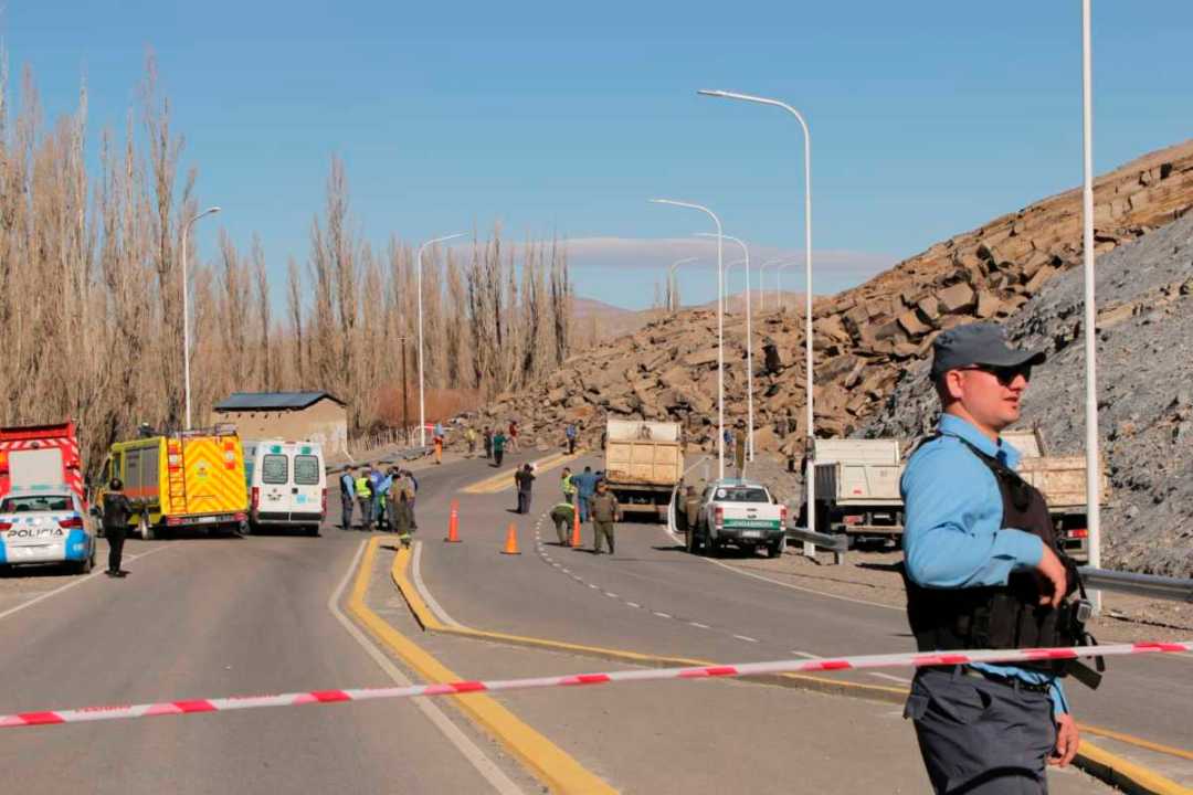 El comisario indicó que no hay información sobre algún vehículo bajo las piedras. «El desmoronamiento lo hubiese empujado hacia el costado», estimó. Se están haciendo tarea de seguridad junto a Bomberos, Vialidad y Gendarmería.