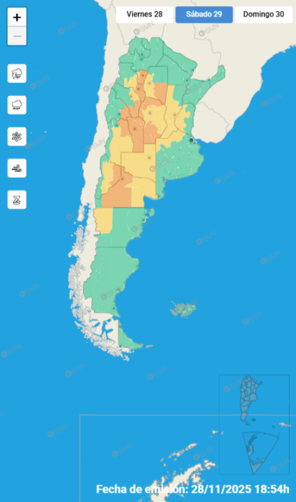 Desde el organismo nacional precisaron que las zonas afectadas estarán bajo alerta «amarilla» durante la tarde y que se elevará a «naranja» durante la noche.