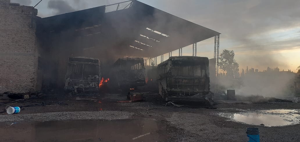 De acuerdo a lo que se pudo establecer, los cuatro colectivos que estaban en el taller y quedaron consumidos por las llamas, eran utilizados por la empresa Kleppe para el traslado de su personal.