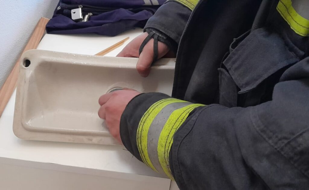 Debido a que no pudo retirar el dedo del botón de depósito de agua, necesitó ayuda de vecinos. Uno de ellos colaboró con herramientas. Al verse imposibilitados de liberarle la mano, llamaron a los rescatistas voluntarios de la localidad.