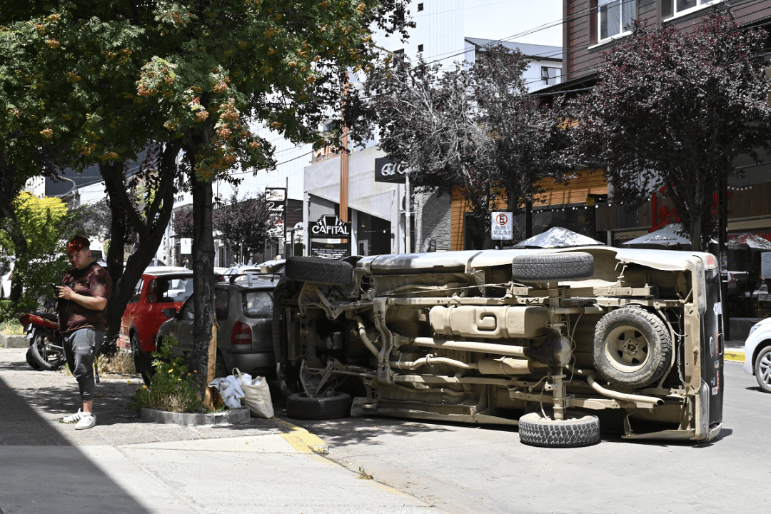 Se quedó sin frenos en la camioneta y volcó en el centro de Bariloche